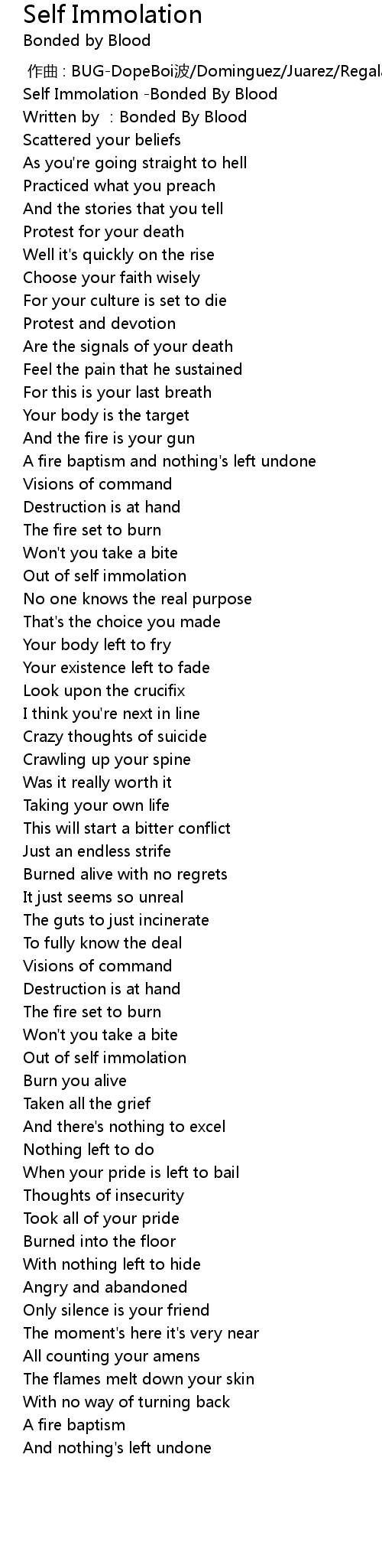| [00:00.00] | Self Immolation -Bonded By Blood |