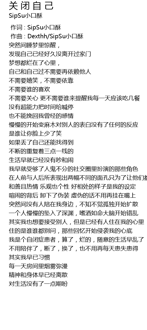 | [00:00.000] | 作词 : SipSu小口酥 |