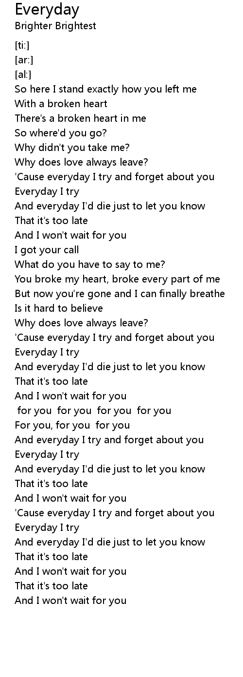 'Cause everyday I try and forget about you |