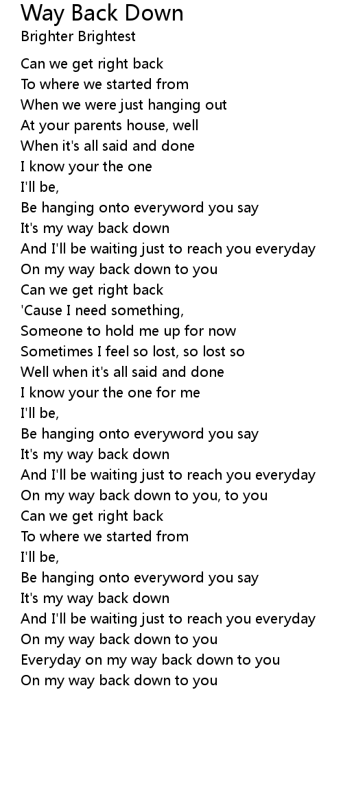 Everyday on my way back down to you |