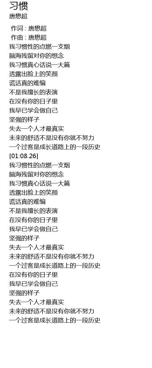 | [01:36.63] | 我习惯真心话说一大篇 |