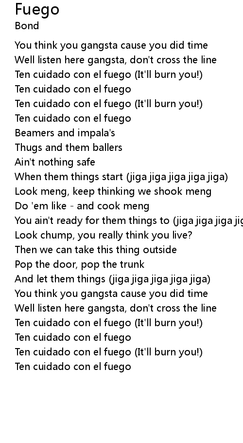 | [00:56.91] | Ten cuidado con el fuego (It'll burn you!) |