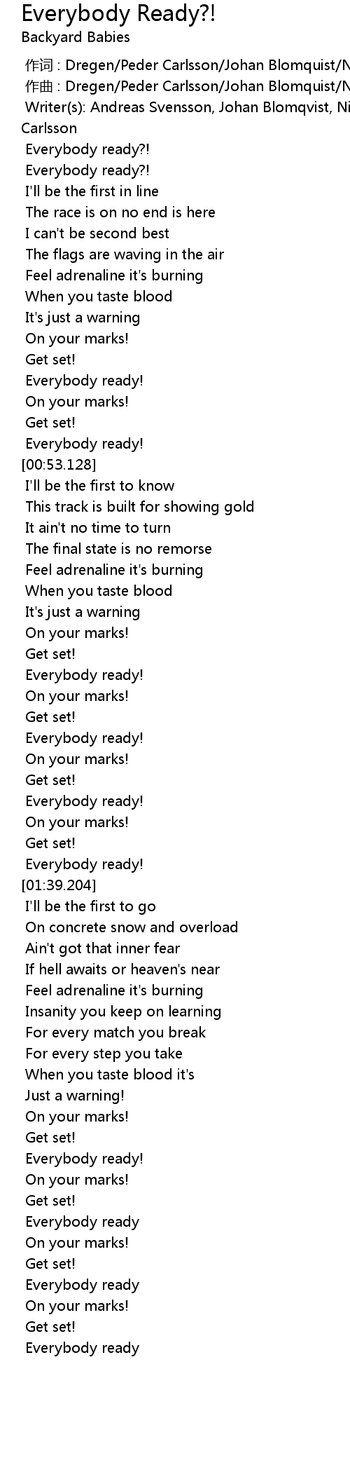 | [00:04.288] | Writer s: Andreas Svensson, Johan Blomqvist, Niklas Borg, Peder Carlsson |