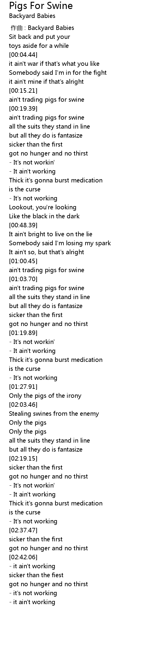| [02:01.46] | Only the pigs of the irony |