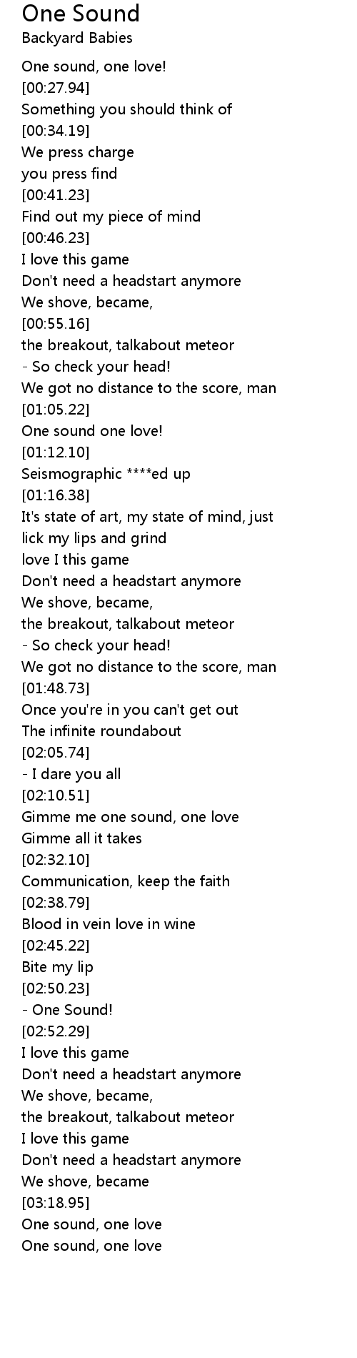[02:28.85] Gimme me one sound, one love