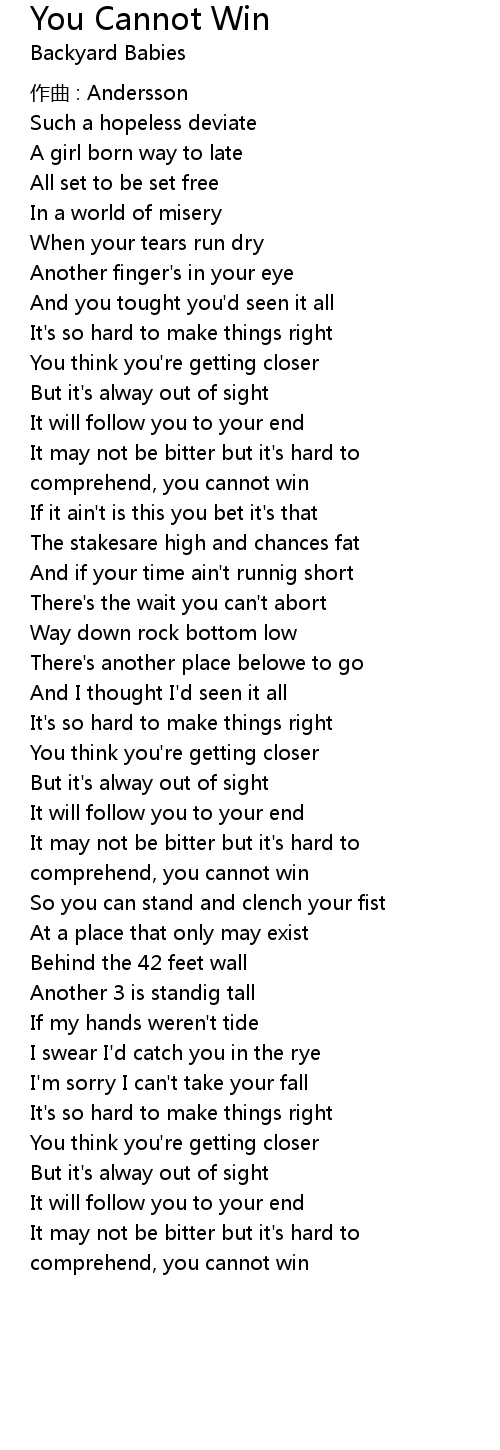 | Song | You Cannot Win |