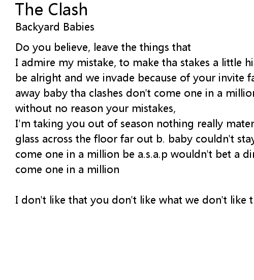 I admire my mistake, to make tha stakes a little higher no nothing's ever gonna be alright and we invade because of your invite far out b. baby couldn't stay away baby tha clashes don't come one in a million did you believe, leaveing me without no reason your mistakes, |