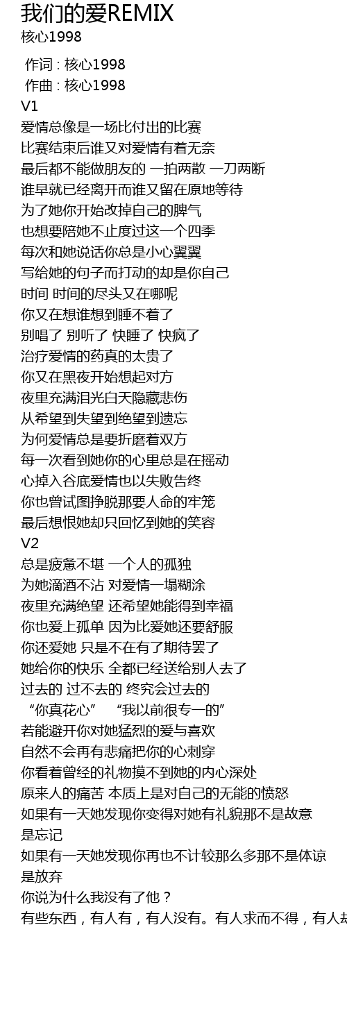| [00:00.000] | 作词 : 核心1998 |