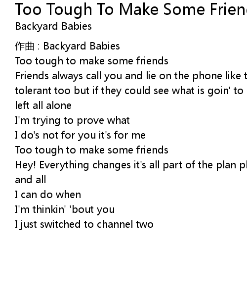 | Friends always call you and lie on the phone like they think that you're tolerant too but if they could see what is goin' to be and that you're actually left all alone | |