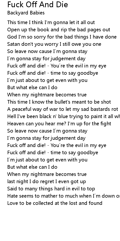 | Song | Fuck Off And Die |