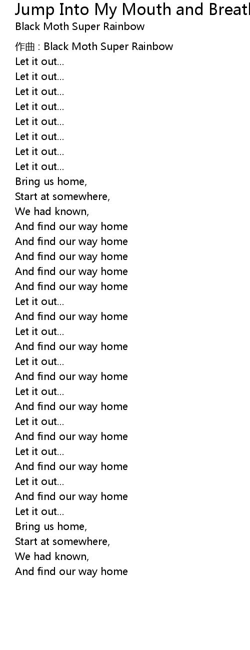 | Song | Jump Into My Mouth and Breathe the Stardust |