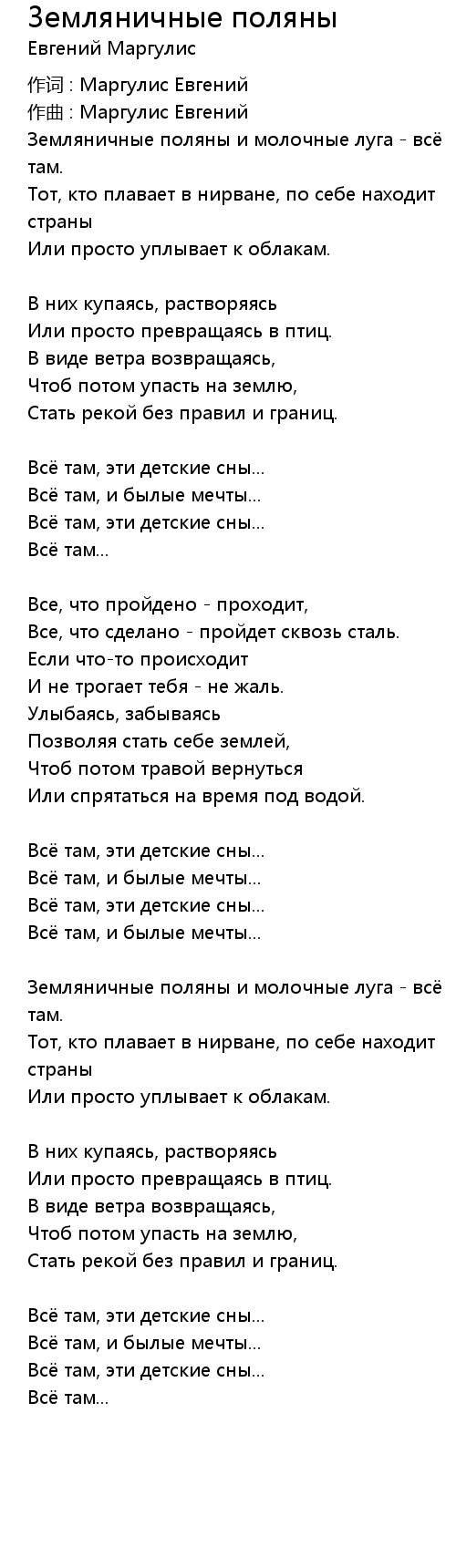 Земляничные поляны  Lyrics