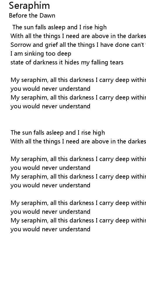 My seraphim, all this darkness I carry deep within |