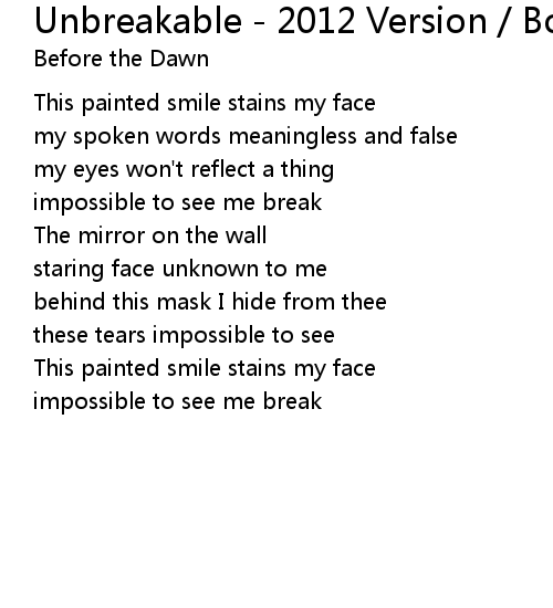| Song | Unbreakable - 2012 Version / Bonus |