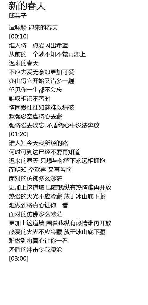 | [00:00] | tán yǒng lín chí lái de chūn tiān |