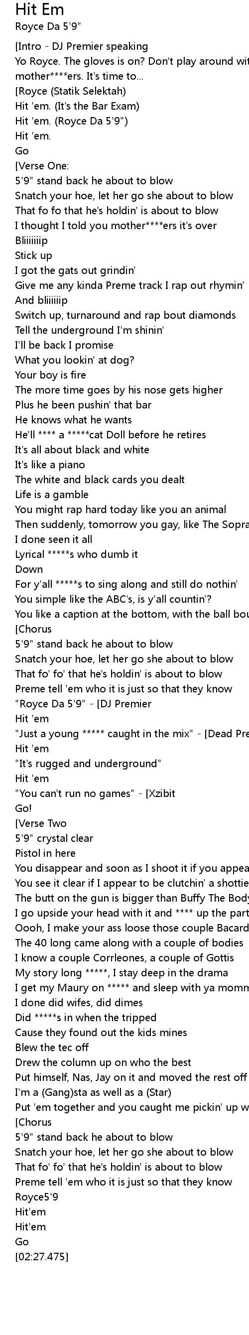 | [01:15.455]"Royce Da 5'9" - [DJ Premier] |