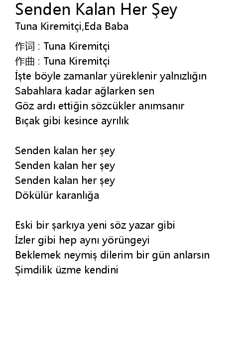 | Eski bir şarkıya yeni söz yazar gibi | |