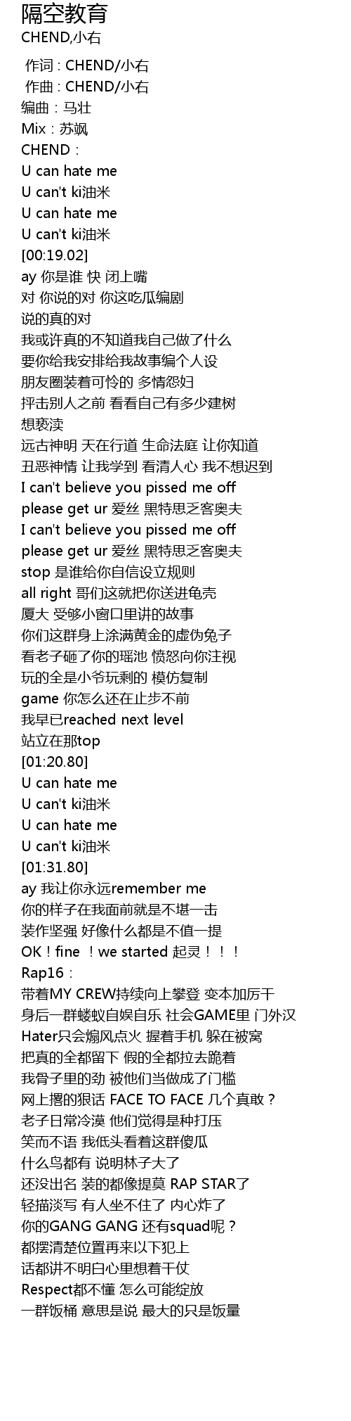 | [01:56.61] | 网上撂的狠话 FACE TO FACE 几个真敢? |
