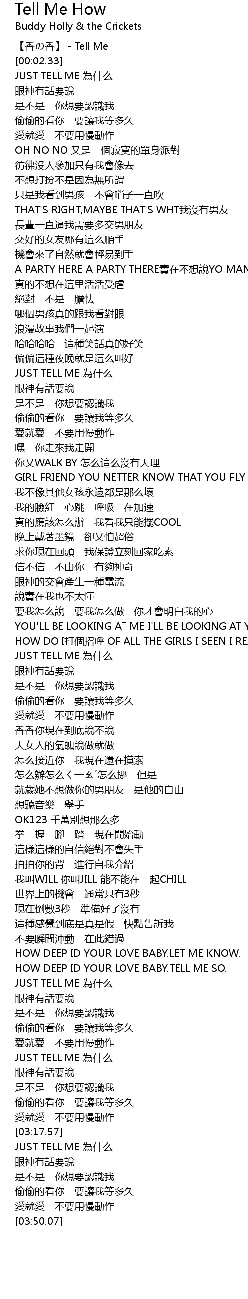 | [00:02.93] | JUST TELL ME wèi shén me |