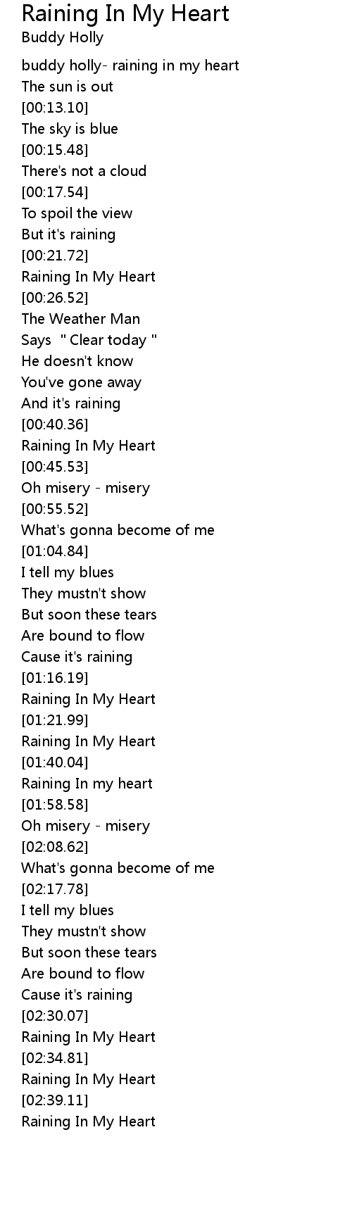 | [00:00.88] | buddy holly- raining in my heart |