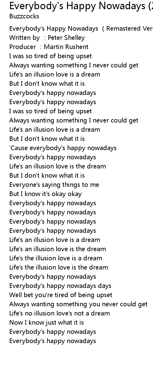 | [00:00.00] | Everybody' s Happy Nowadays Remastered Version Buzzcocks |
