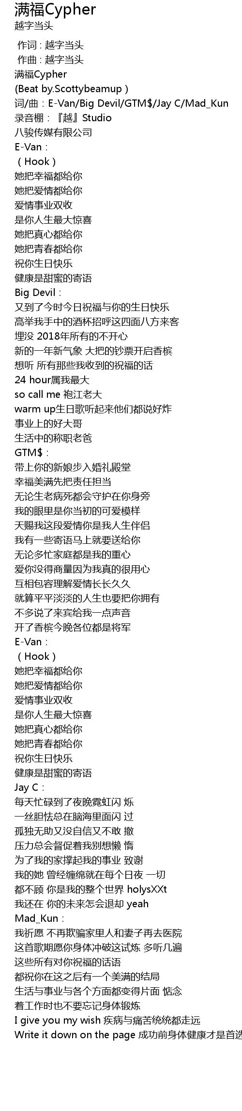 | [00:04.409] | 词/曲:E-Van/Big Devil/GTM$/Jay C/Mad_Kun |
