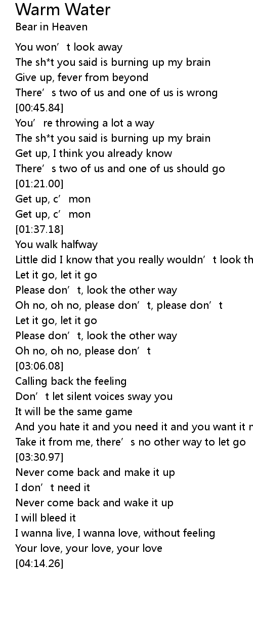 | [02:34.29] | Oh no, oh no, please don' t, please don' t |