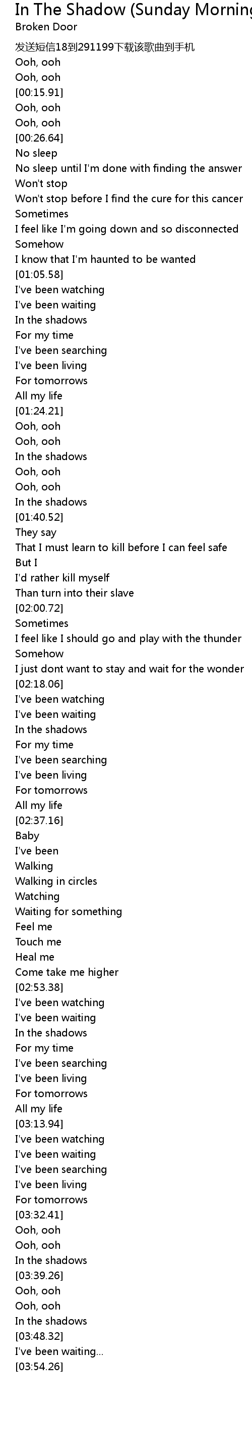 | [03:37.01] | In the shadows |