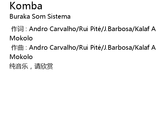 | [00:01.000] | 作曲 : Andro Carvalho/Rui Pité/J.Barbosa/Kalaf Angelo/Edward Mokolo |