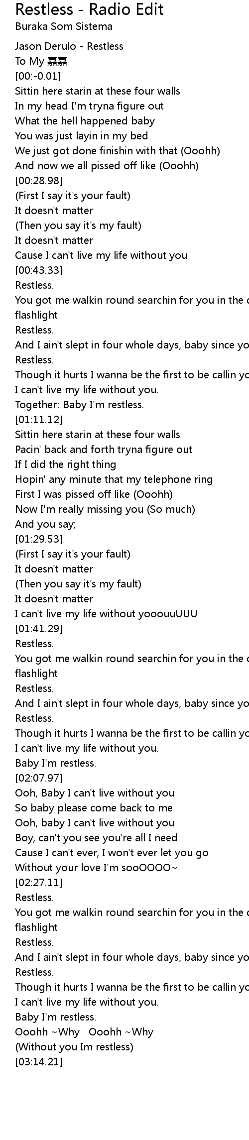 | [00:-7.52] | Jason Derulo Restless |