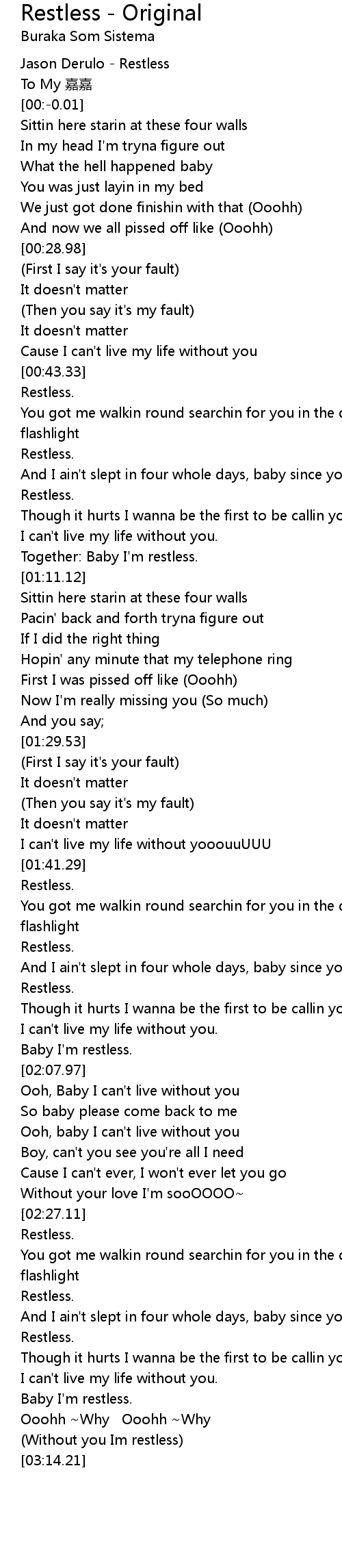 | [00:-7.52] | Jason Derulo Restless |