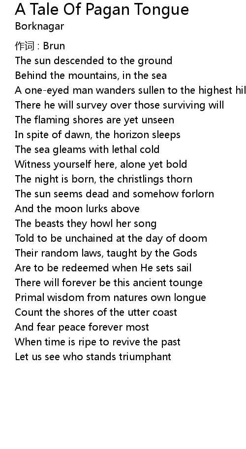 | Song | A Tale Of Pagan Tongue |