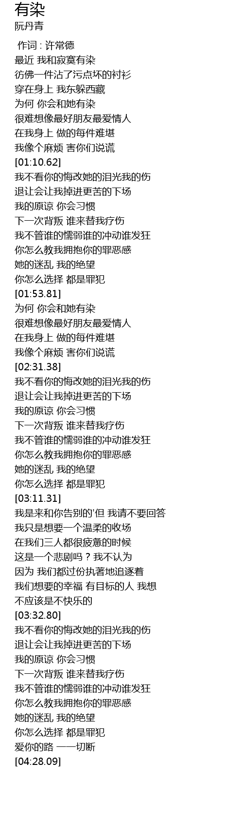 | [00:44.97] | 为何 你会和她有染 |