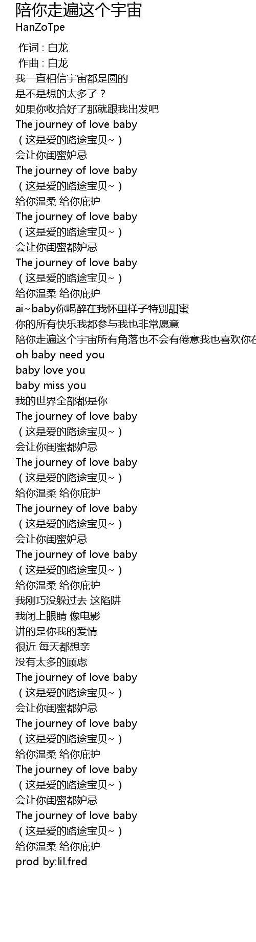 | [00:48.364] | 陪你走遍这个宇宙所有角落也不会有倦意我也喜欢你在我耳边的喘息 |