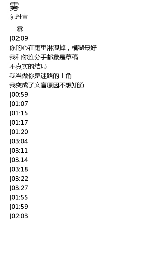 | [00:30] | 你的心在雨里淋湿掉,模糊最好 |