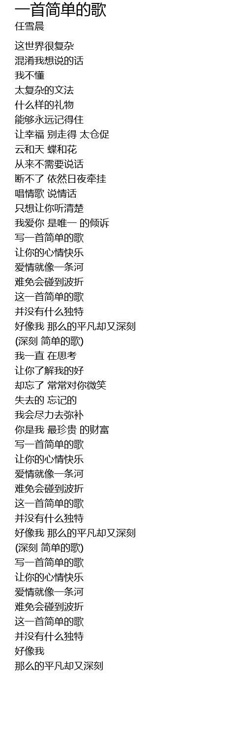 | [02:53.87] | zhè yī shǒu jiǎn dān de gē |