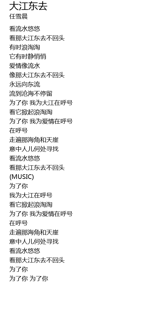 | [00:47.700] | xiàng nà dà jiāng dōng qù bù huí tóu |