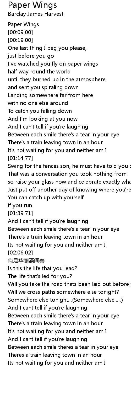 | [00:34.06] | I' ve watched you fly on paper wings |