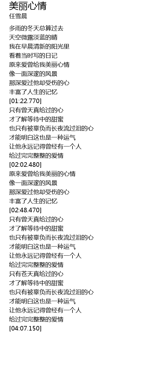 | [01:00.630] | 原来爱曾给我美丽心情 |