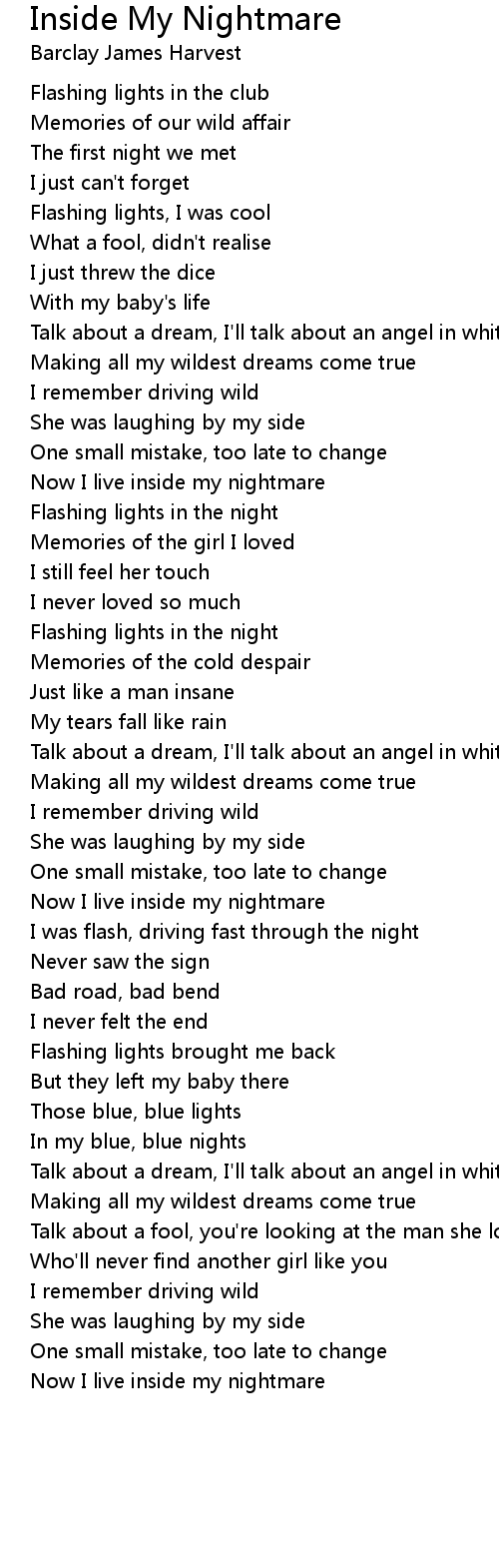 Now I live inside my nightmare |
