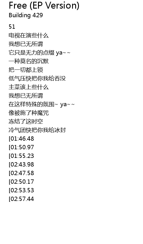 | [02:42.29][01:55.23][00:48.53] | I wanna be free |