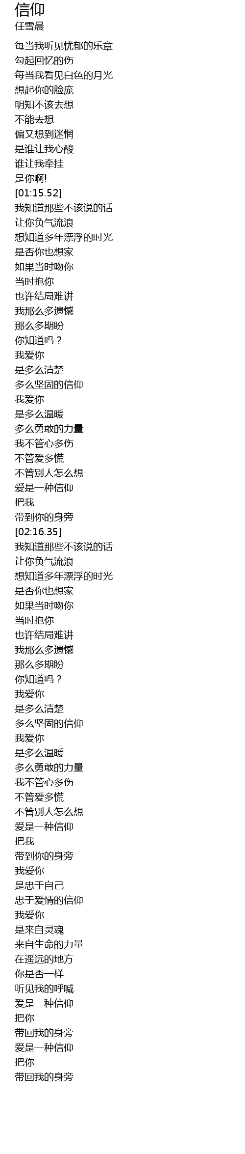 | [02:07.38] | ài shì yī zhǒng xìn yǎng |