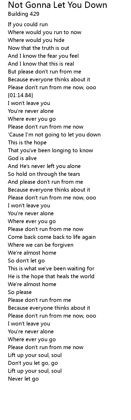 Not Gonna Let You Down Lyrics