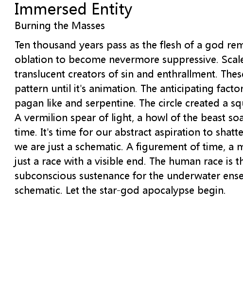 Immersed Entity Lyrics