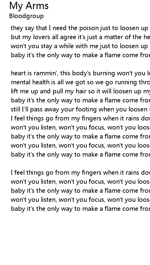 | won' t you listen, won' t you focus, won' t you loosen up my arms | |