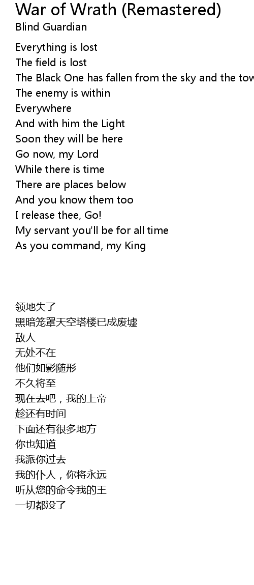 | Song | War of Wrath (Remastered) |