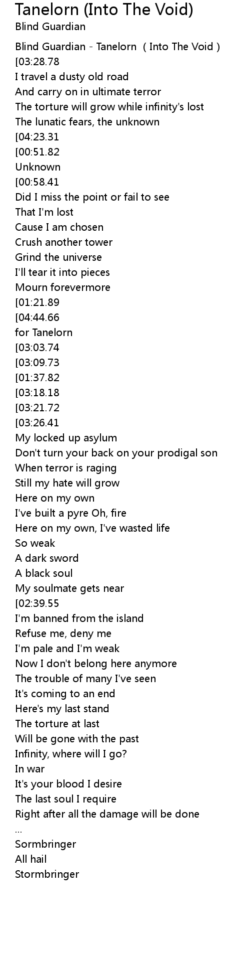 | [00:02.00] | Blind Guardian Tanelorn Into The Void |