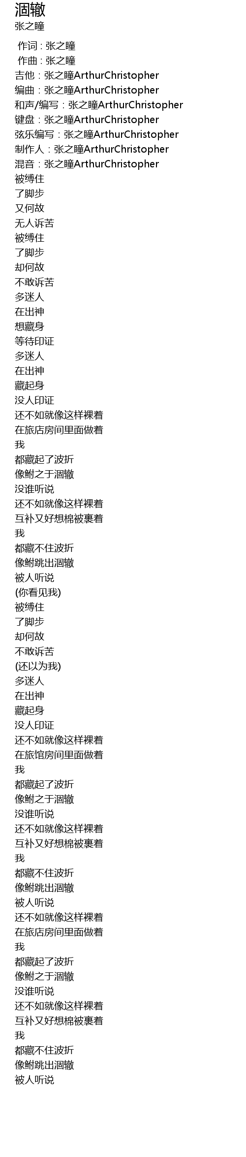 | [00:03.812] | 编曲:张之瞳ArthurChristopher |