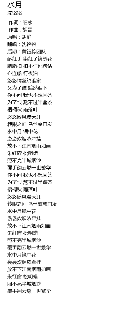 | [01:31.944] | shuǐ zhōng yuè jìng zhōng huā |