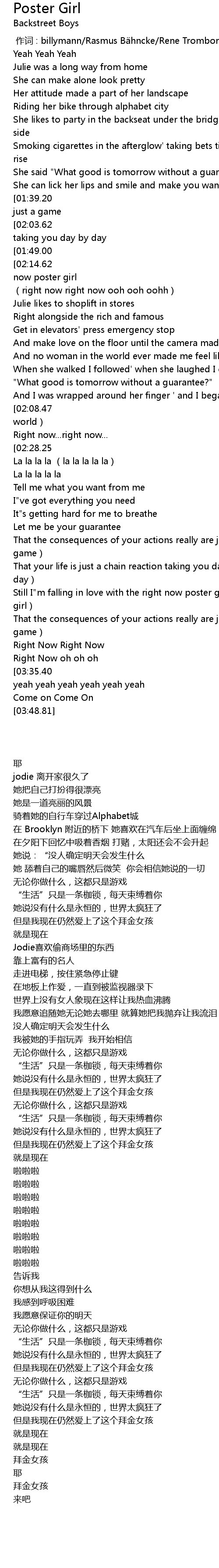 | [03:03.26] | Still I" m falling in love with the right now poster girl poster girl |